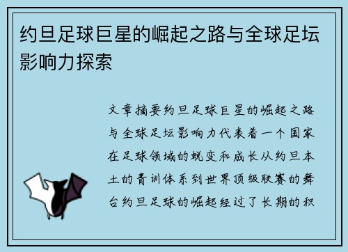 本文将围绕葡萄牙足球教练穆里尼奥在其执教生涯中的三次关键时刻进行深入探讨,重点分析这三次关键迹象如何揭示了他职业生涯中的危机时刻。这三次危机分别是穆里尼奥在切尔西的“第二次”离任、在曼联的种种矛盾,以及他在罗马的困难期。通过这三次关键危机,我们不仅能够了解穆里尼奥职业生涯的高潮与低谷,还可以深刻反思...